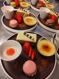 - Assortiments de mignardises : bavarois, éclairs, javanais, choux, merveilleux, tartelettes aux fruits, mousse chocolat, tiramisu